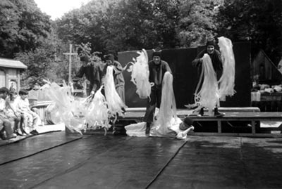 Märchen und Alptraum, Volkstheater und moderne Experimentierbühne vermischen sich in dieser surrealen Allegorie um Leben und Tod. Mythen, Legenden, Schwank, Humor, Bewegung, Farbe und Poesie vereinen sich in dieser Inszenierung des Teatrul Masca aus Bukarest, das in seiner Art in Rumänien einzigartig ist. Mihai Malaimare gründete dieses »Theater für Geste, Pantomime und Körperausdruck« im Jahre 1990. Er erhielt bei Jacques Le Coq in Paris seine Ausbildung, alle Darsteller besitzen eine professionelle Schauspielausbildung. Die Compagnie gastierte in zahlreichen Ländern und auf internationalen Festivals, so in Frankreich, Ungarn, Ägypten, Tunesien, Australien, in der Tschechoslowakei und der Türkei.