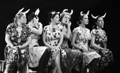Zwei Jahre lang haben Alvis Hermanis und die Schauspieler des Jaunais Rīgas teātris (Neues Theater Riga) über den ländlichen Raum recherchiert. Das Stück »Melnais piens« (»Schwarze Milch«) ist eine szenische Sammlung voll schöner, rauer, anrührender, skurriler und auch böser Geschichten über Bäuerinnen, die sich in Kühe verwandeln. Lettland ist Mitglied der Europäischen Union, dessen Bestimmungen das Landleben existenziell bedrohen. Das Verschwinden der Milchwirtschaft steht als Synonym ebenso wie der symbolträchtige Stücktitel für die Gefahren unserer Zeit.