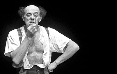 Ein Mann kommt auf die Bühne, setzt sich an den Tisch, schenkt sich ein Glas Wein ein und beginnt, einen Brief zu schreiben. Diese Szene wiederholt sich 15 Mal, ohne Worte und immer in einem anderen Stil: rückwärts, betrunken, ohne Hände, als Stummfilm, Western- oder Horrorversion. Das ist absurdes, voll aufgedrehtes physisches Theater mit einem Meister der Körpersprache, Mimik und szenischen Präzision.