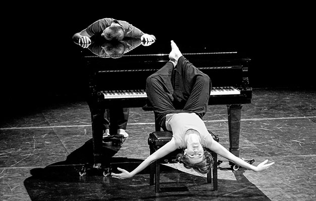 Der Workshop richtet sich an Amateure und semi-professionelle Tänzer. Gianfranco Celestino und Annalisa Derossi geben Einblicke in den Entstehungsprozess ihres Tanzkonzerts »Duo con piano – Tanzstück für zwei Pianisten«, das als Gastspiel zur euro-scene Leipzig an demselben Ort gezeigt wird. Beide Künstler, in Italien geboren und in Luxemburg lebend, sind ausgebildete Tänzer und Pianisten zugleich.