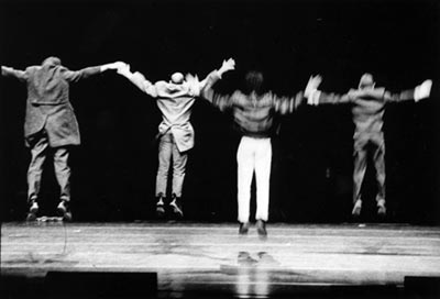 »Marin's dancers play with the audience, ironically, without any pathos, and then for the audience whose breath is taken away when the fear of the extreme right in Europe gets a face, a movement... Following Maguy Marin and her dancers and how they think out loud about man's place and his relationship to art, the environment, and to politics at the end of the 20th century is one of the most impressive theater experiences in recent years« (Wiebke Hüster, ballett international/tanz aktuell 3/99).