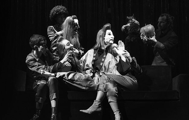 Elfriede Jelinek, born in Mürzzuschlag / Austria in 1946, now belongs to the most important contemporary German-speaking authors. Her dramas include »Ein Sportstück« (»Sports play«, 1998), »Rechnitz (Der Würgeengel)« (»Rechnitz (The exterminating angel)«, 2008) and »Winterreise« (»Winter’s journey«, 2011), among others. In 2004, she was awarded the Nobel prize for literature. »Am Königsweg« (»On the royal road«) premiered at the Deutsche SchauSpielHaus Hamburg in 2017 and was directed by Falk Richter. The author had wanted Nikolaus Habjan as the director for the Austrian première. He created a breath-taking piece with puppets between carnival and neo-fascism, grotesque and world apocalypse.